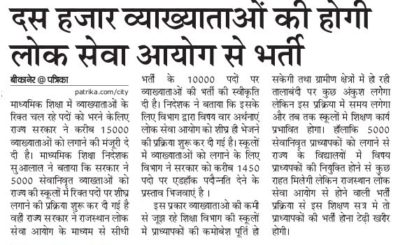 Rpsc 1st Grade Teacher 5000 Recruitment 2019 Rajasthan School Lecturer Political Hindi History